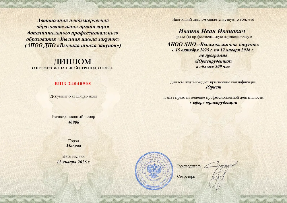 Это полноценная образовательная программа для получения дополнительной квалификации и освоения новой профессии. Для поступления также требуется высшее или среднее профессиональное образование (СПО). Итоговым документом является полноценный диплом о профессиональной переподготовке, который ценится на рынке труда. Программы являются наиболее объемными и начинаются от 250 академических часов, что обеспечивает глубокое погружение в специальность.