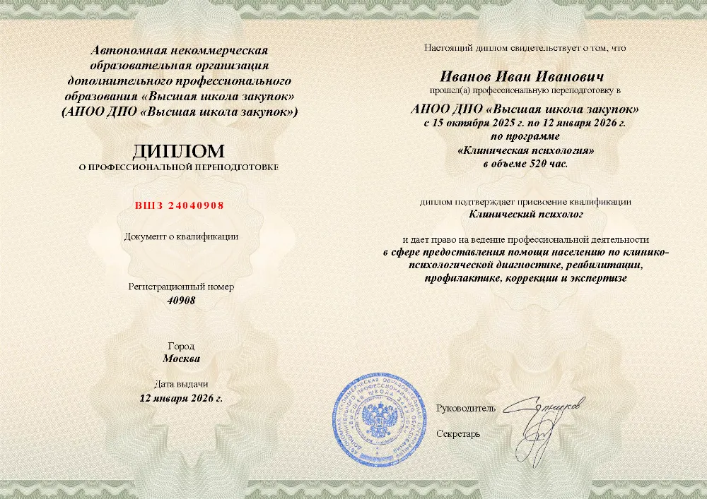 Это полноценная образовательная программа для получения дополнительной квалификации и освоения новой профессии. Для поступления также требуется высшее или среднее профессиональное образование (СПО). Итоговым документом является полноценный диплом о профессиональной переподготовке, который ценится на рынке труда. Программы являются наиболее объемными и начинаются от 250 академических часов, что обеспечивает глубокое погружение в специальность.
