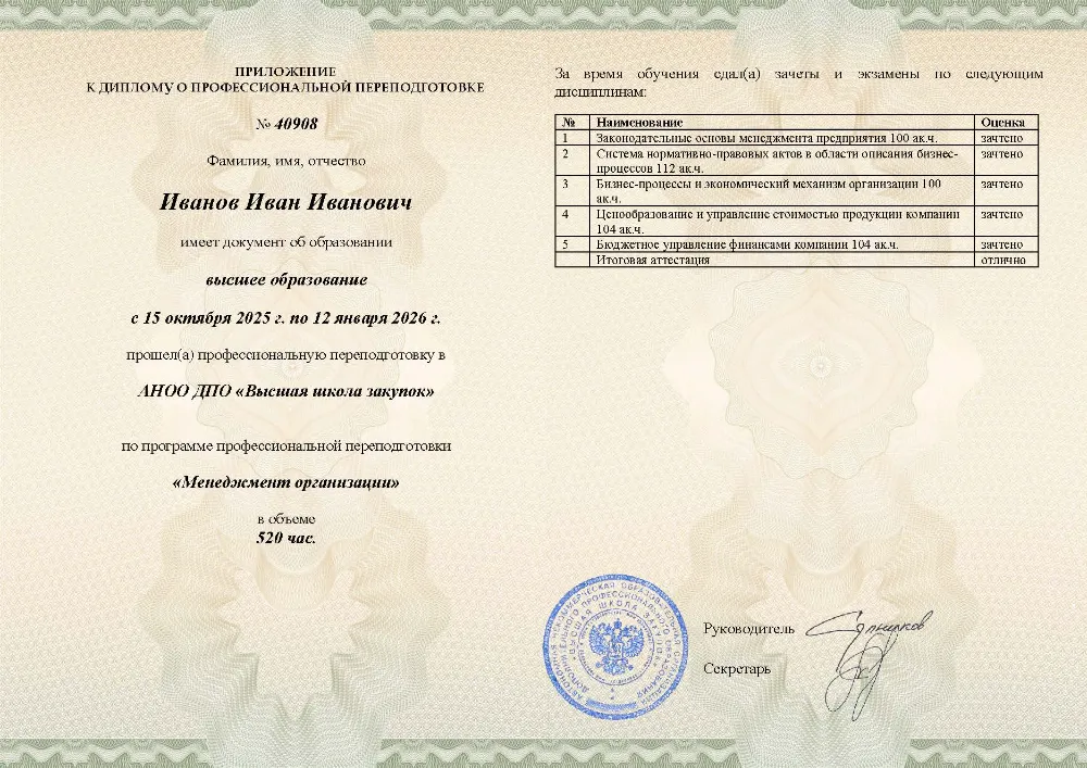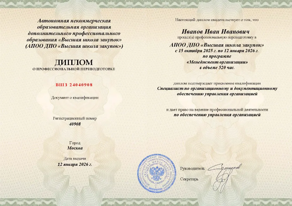 Это полноценная образовательная программа для получения дополнительной квалификации и освоения новой профессии. Для поступления также требуется высшее или среднее профессиональное образование (СПО). Итоговым документом является полноценный диплом о профессиональной переподготовке, который ценится на рынке труда. Программы являются наиболее объемными и начинаются от 250 академических часов, что обеспечивает глубокое погружение в специальность.